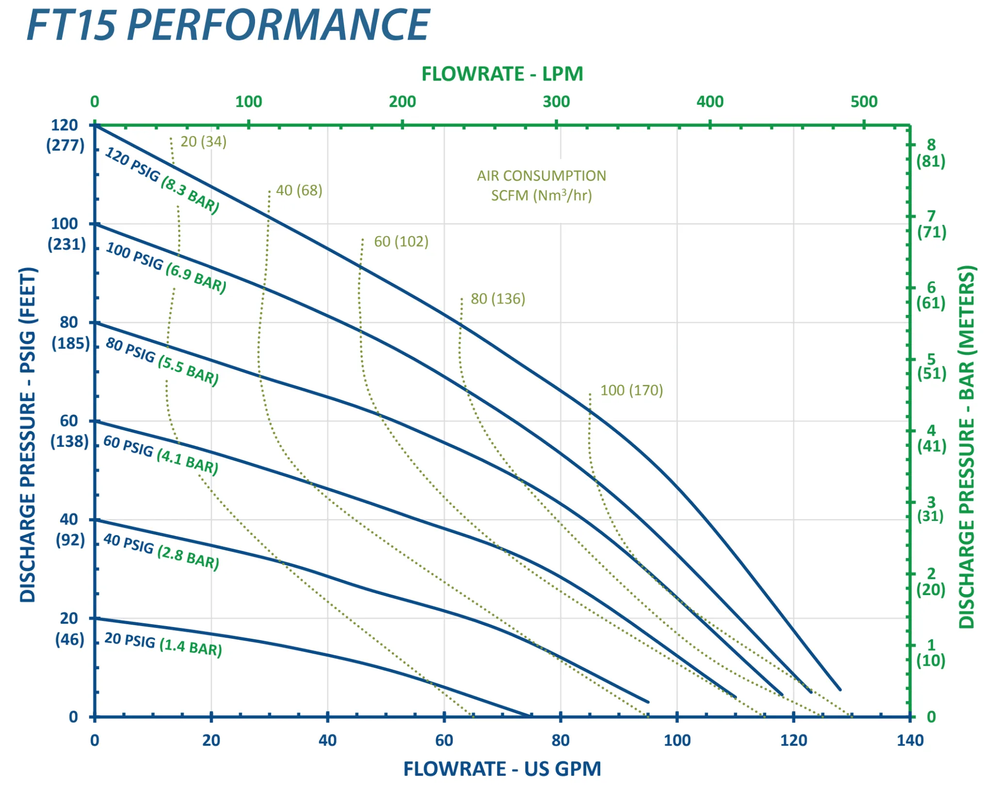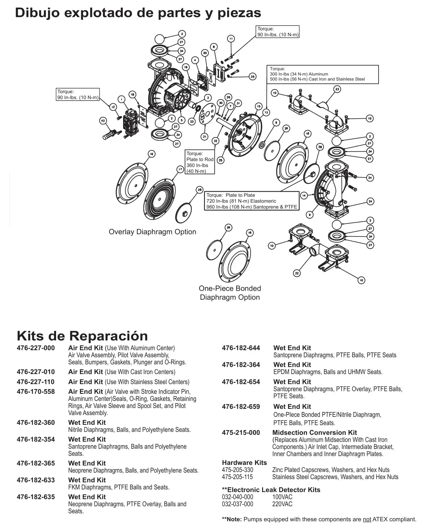 | Presión mínima de entrada de aire: | 10 psig (0.7 bar) - PTFE |