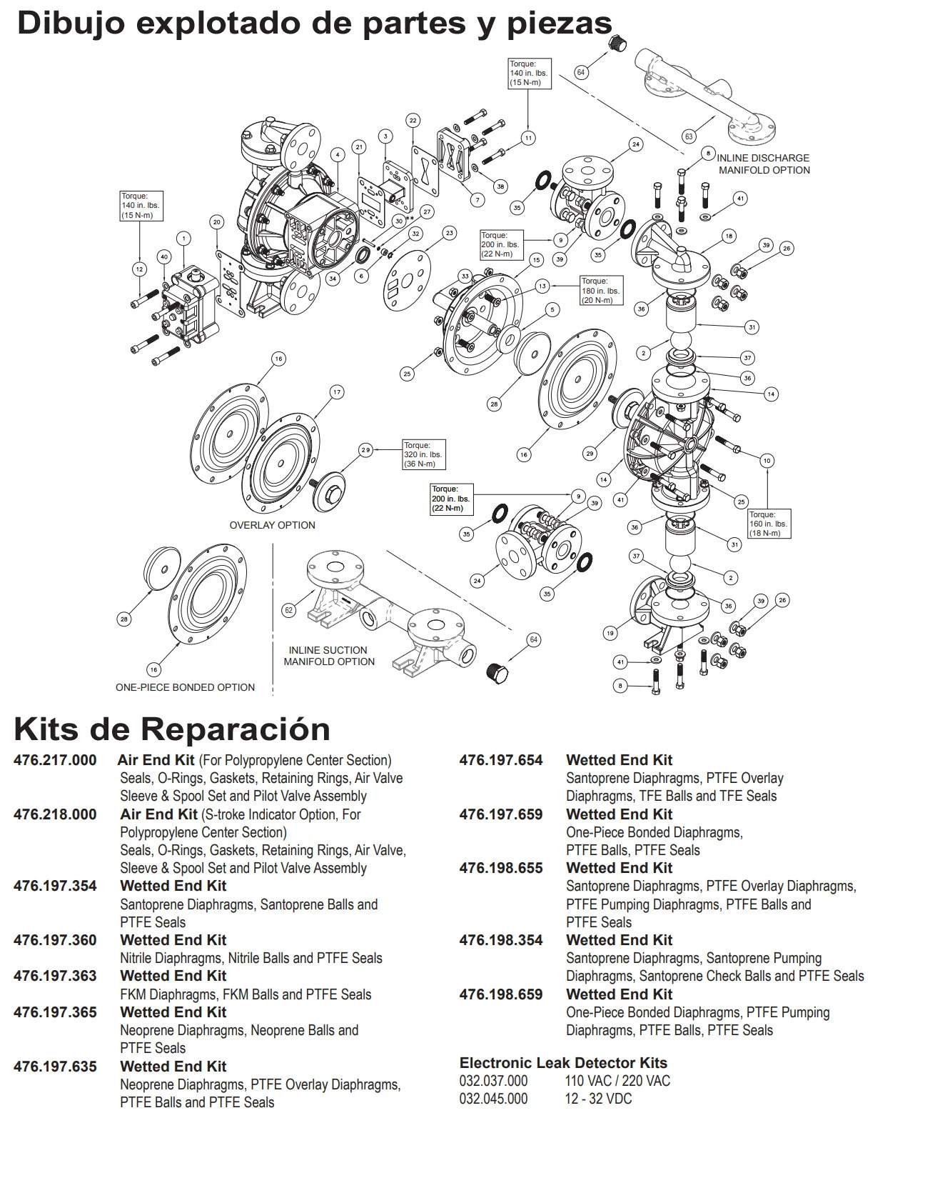 | Presión mínima de entrada de aire: | 10 psig (0.7 bar) - PTFE |