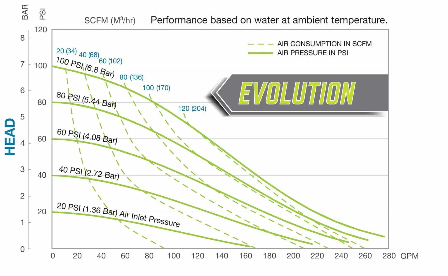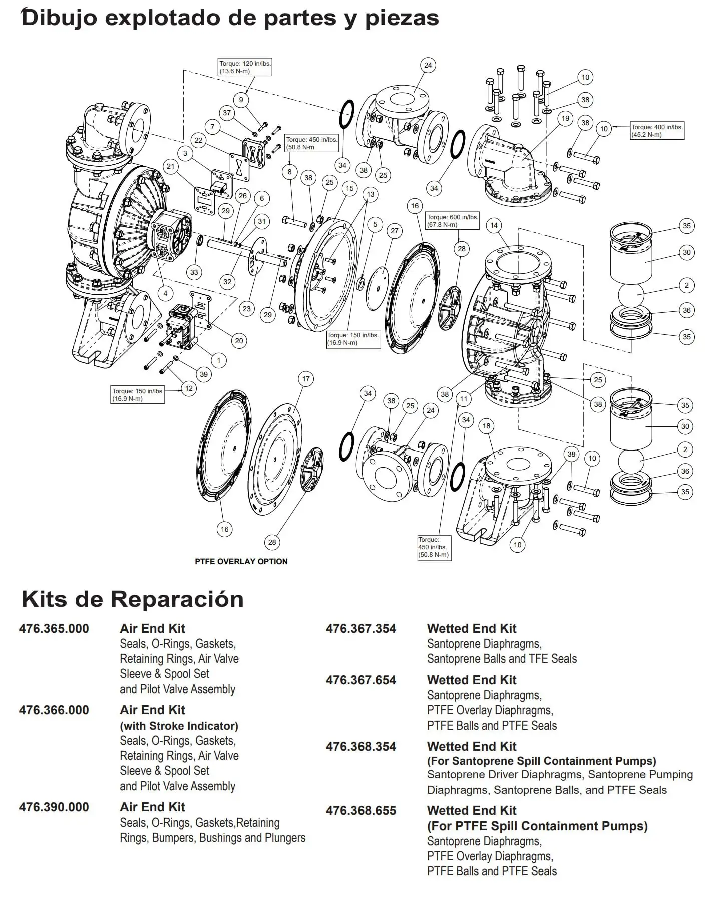 Presión mínima de entrada de aire: 10 psig (0.7 bar) - PTFE