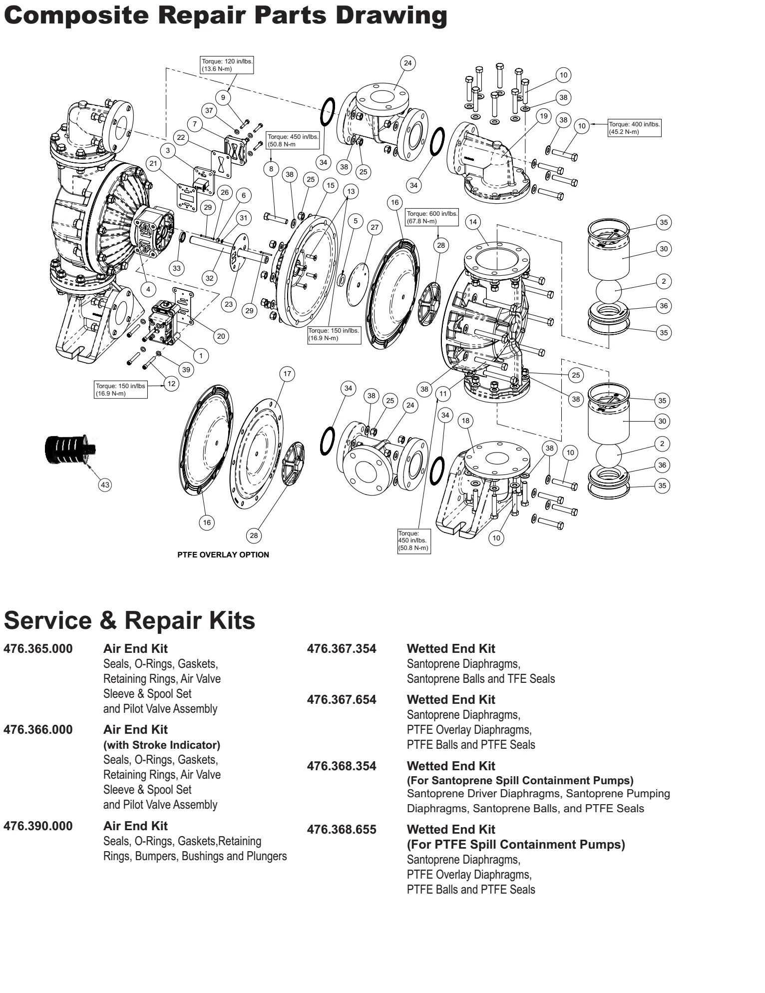 | Presión mínima de entrada de aire: | 10 psig (0.7 bar) - PTFE |
