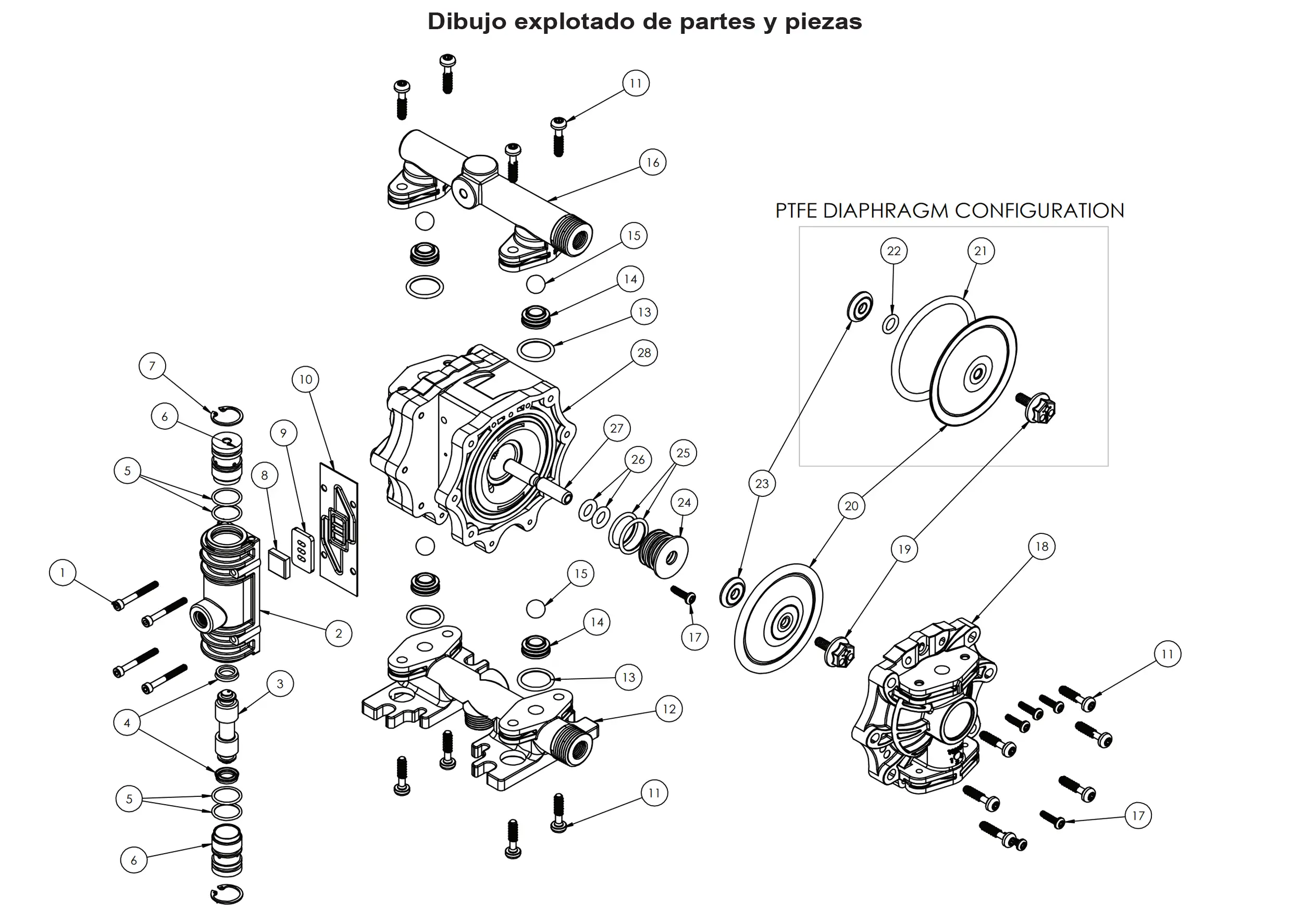 | Materiales del Diafragma: | Neoprene, Santoprene™, FKM, EPDM, PTFE, Buna, Hytrel®, Polyurethane |
