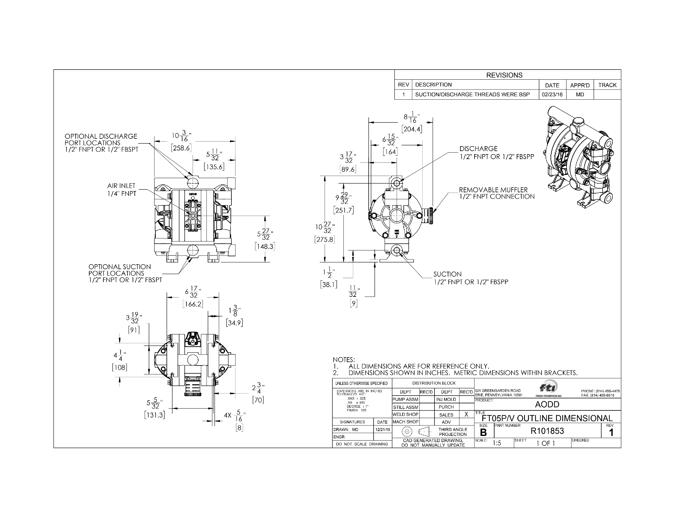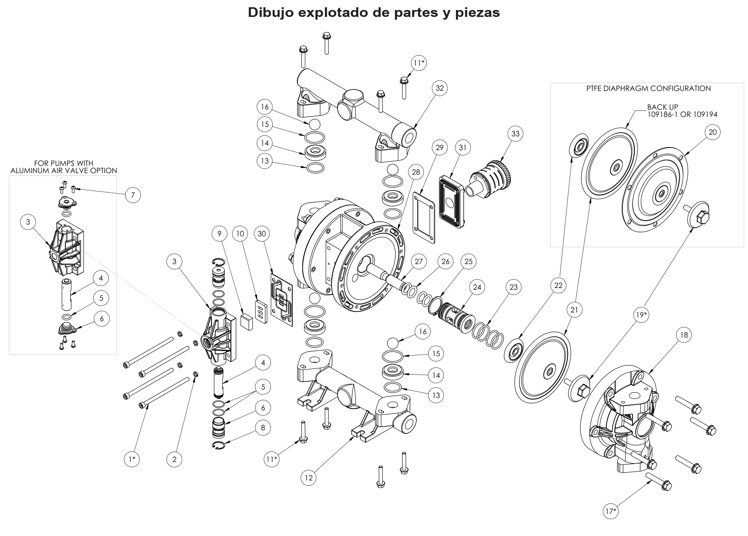 | Presión mínima de entrada de aire: | 10 psig (0.7 bar) - PTFE |