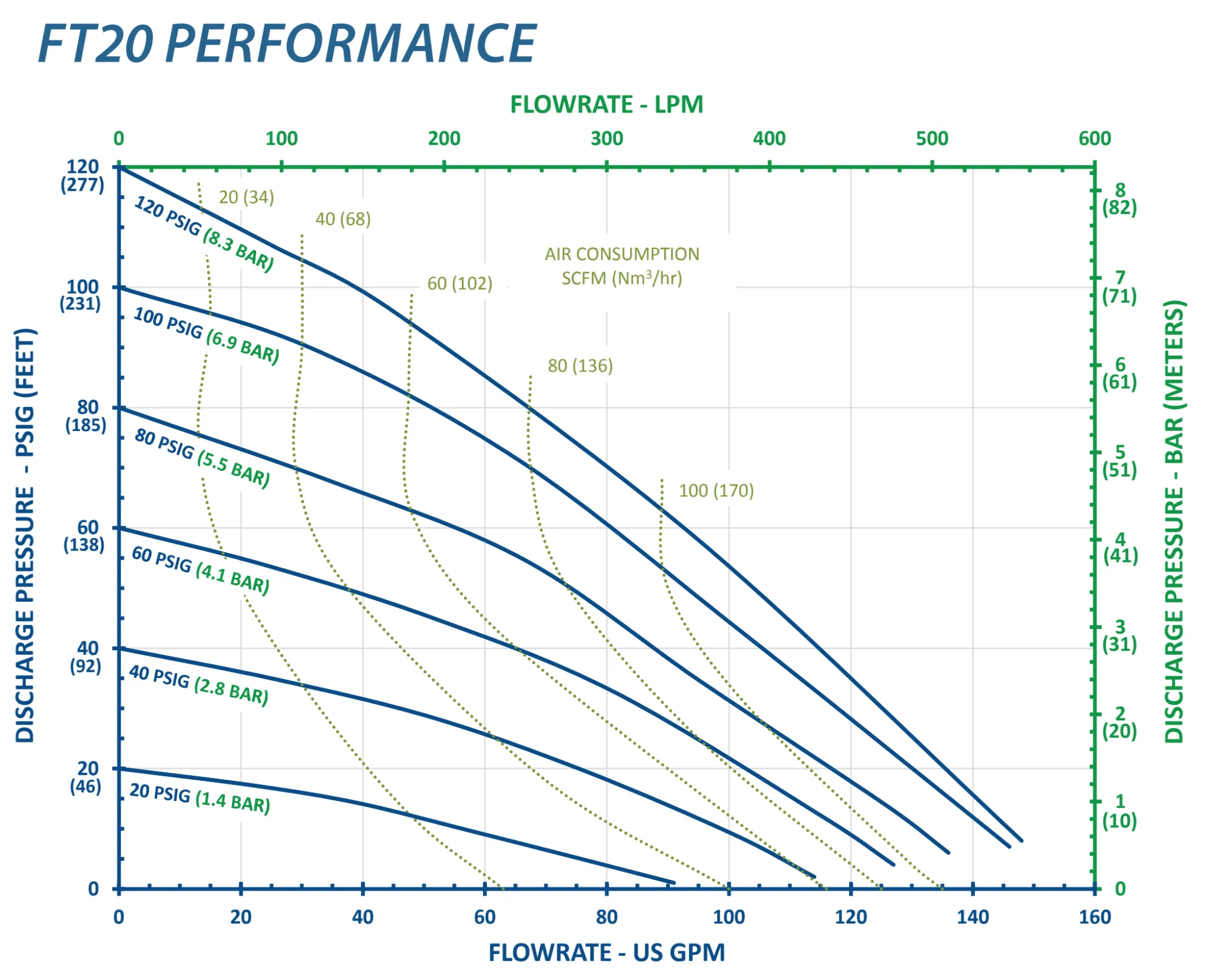 | Presión mínima de entrada de aire: | 10 psig (0.7 bar) - PTFE |