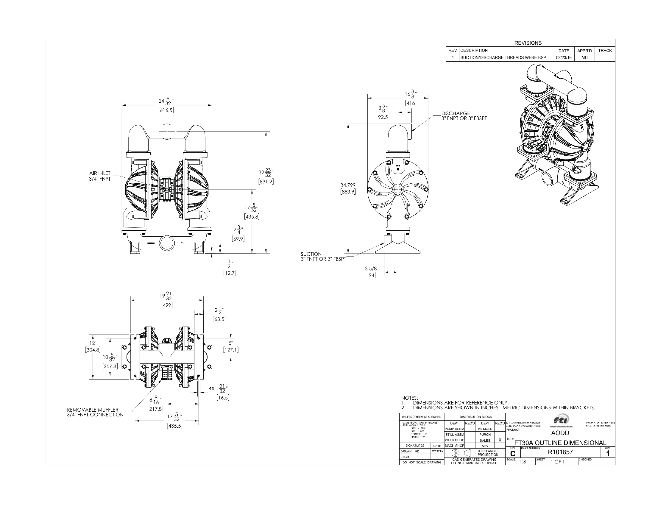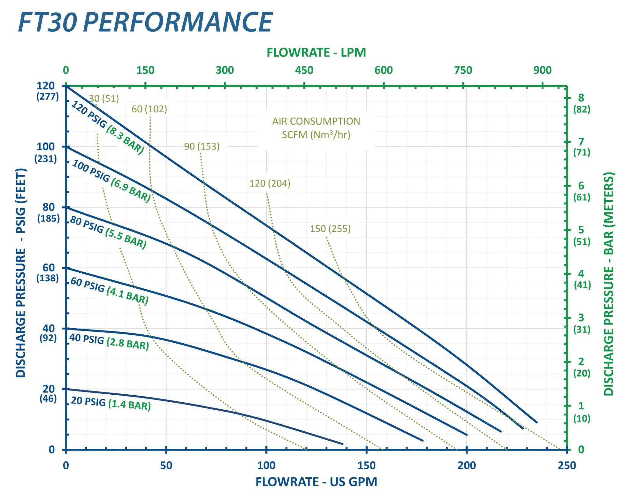 | Presión mínima de entrada de aire: | 10 psig (0.7 bar) - PTFE |