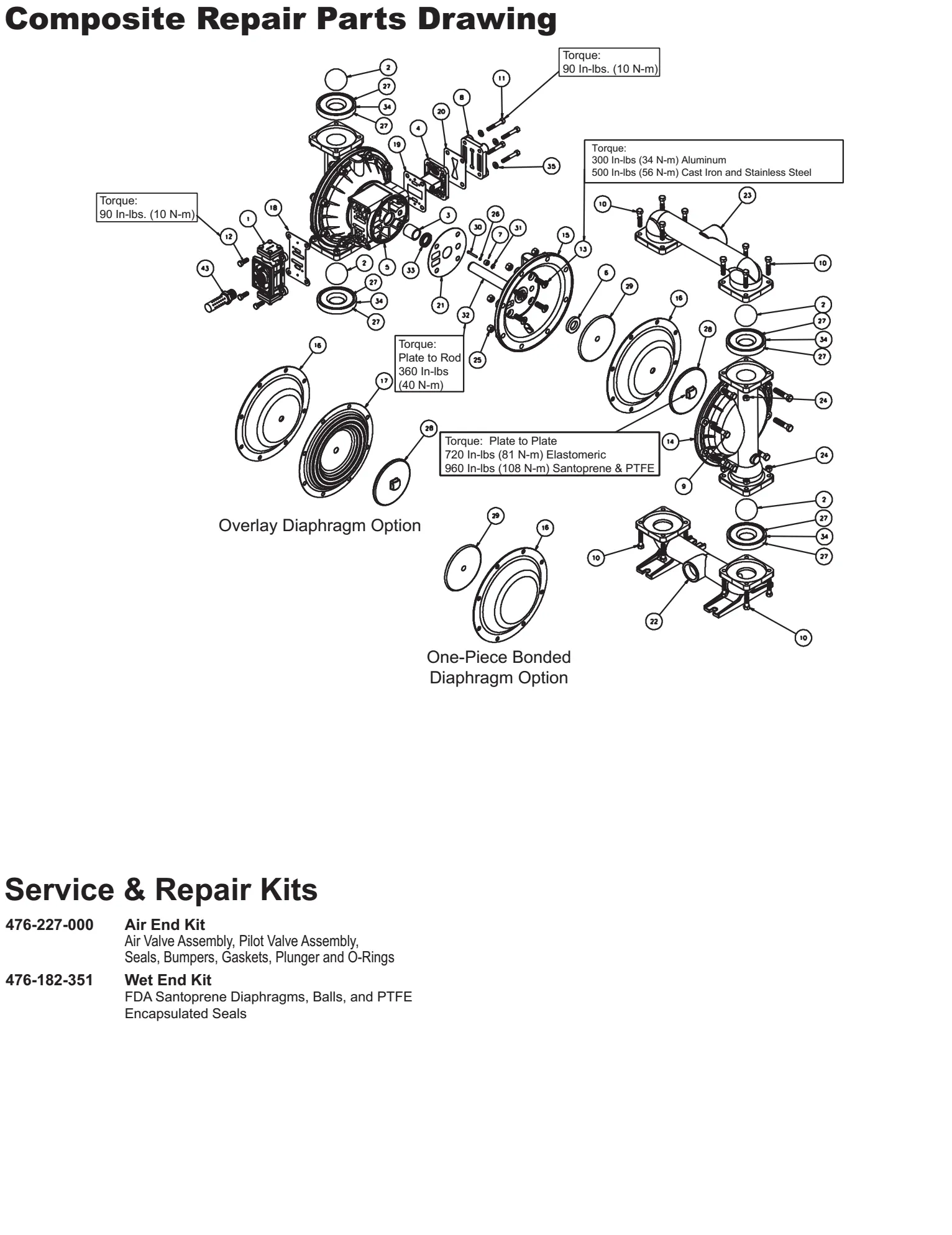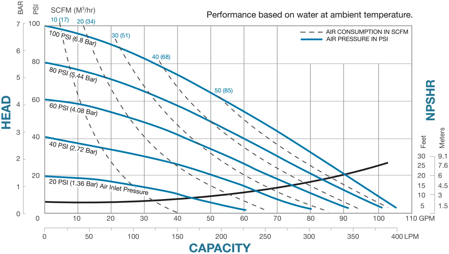 | Presión mínima de entrada de aire: | 10 psig (0.7 bar) - PTFE |