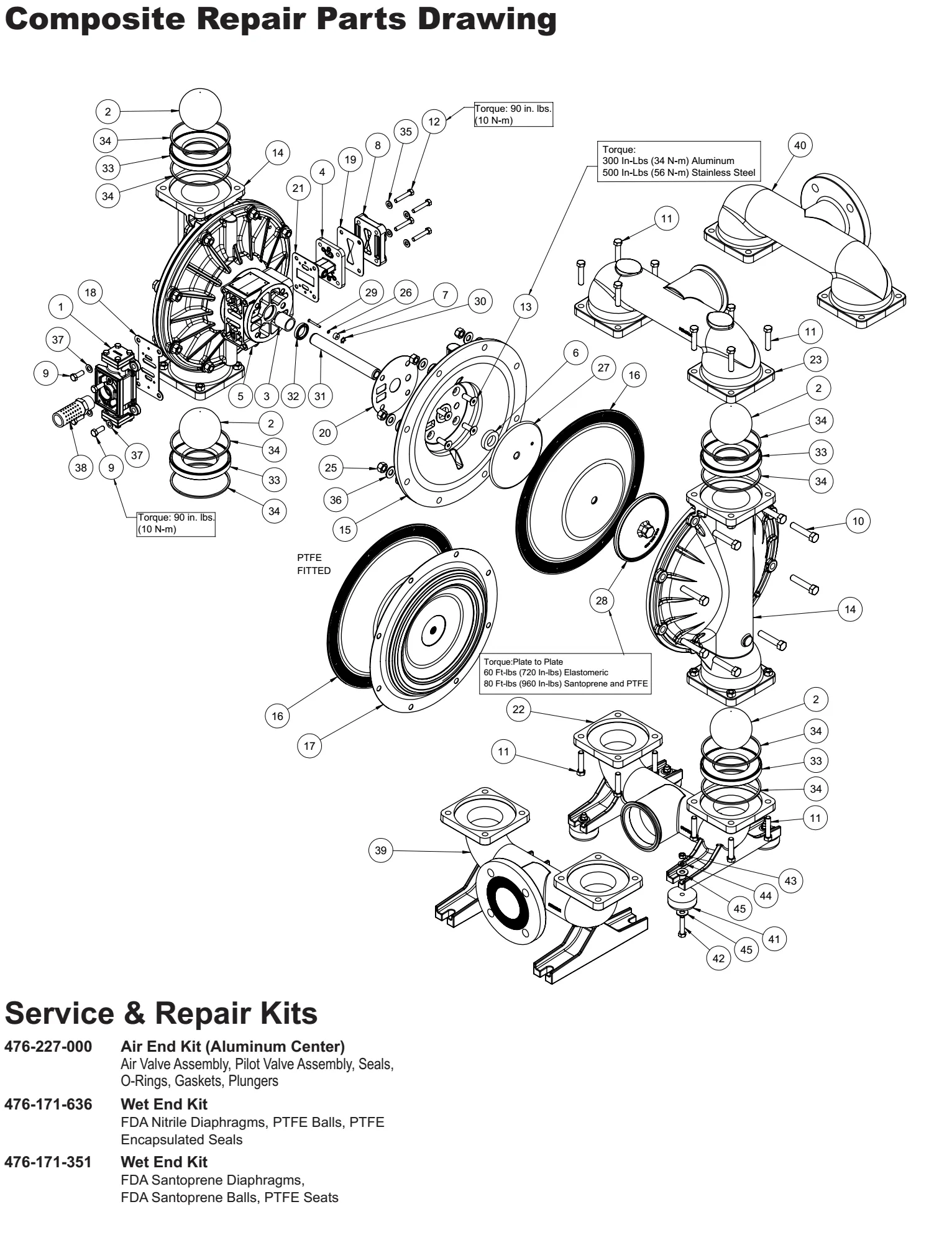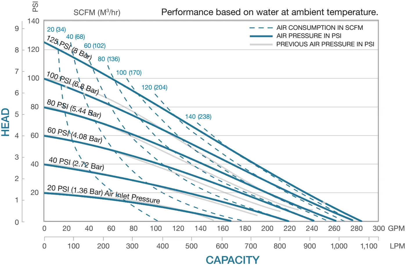 | Presión mínima de entrada de aire: | 10 psig (0.7 bar) - PTFE |