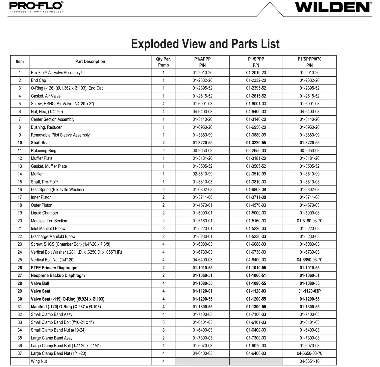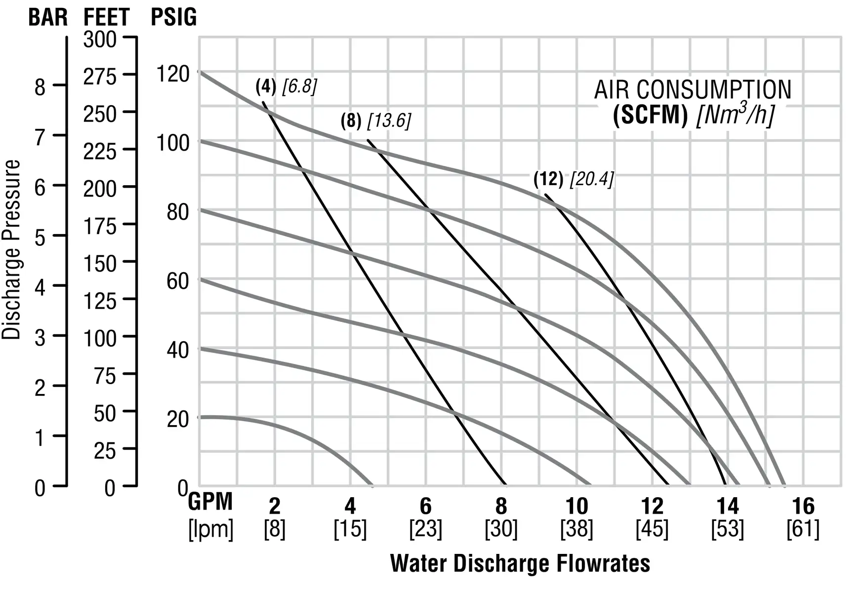 | Presión mínima de entrada de aire: | 10 psig (0.7 bar) - PTFE / 20 psig (1.4 bar) - Santoprene |