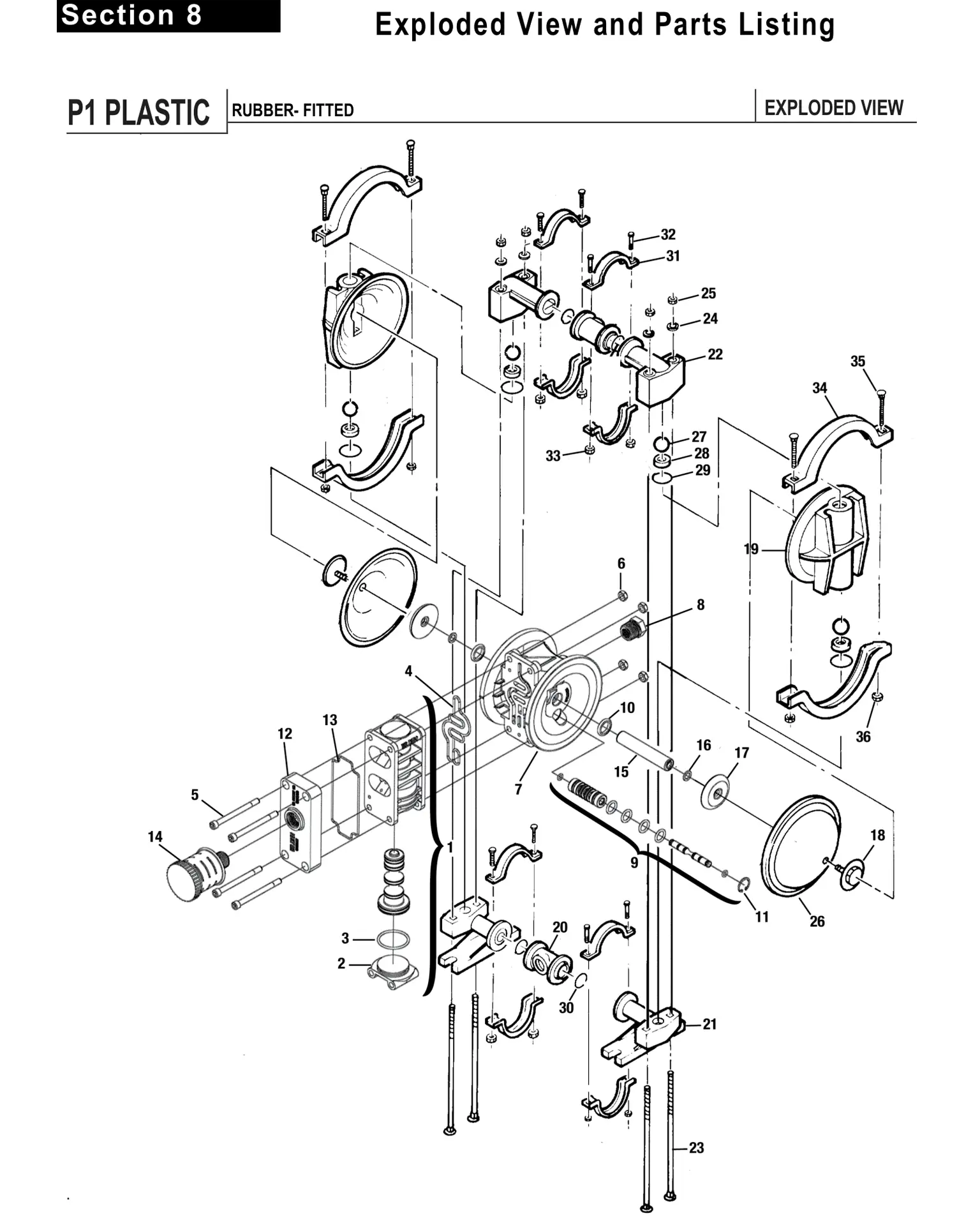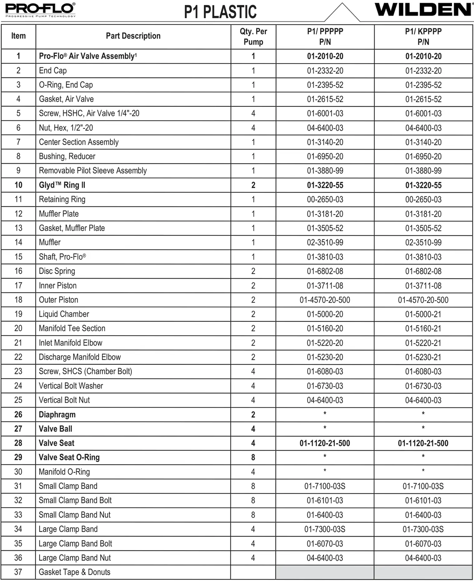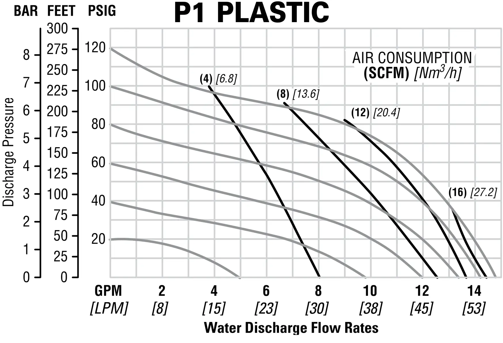 | Presión mínima de entrada de aire: | 10 psig (0.7 bar) - PTFE / 20 psig (1.4 bar) - Santoprene |