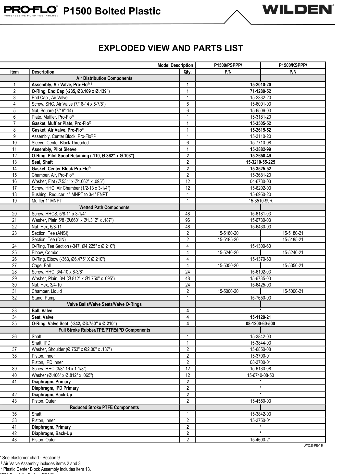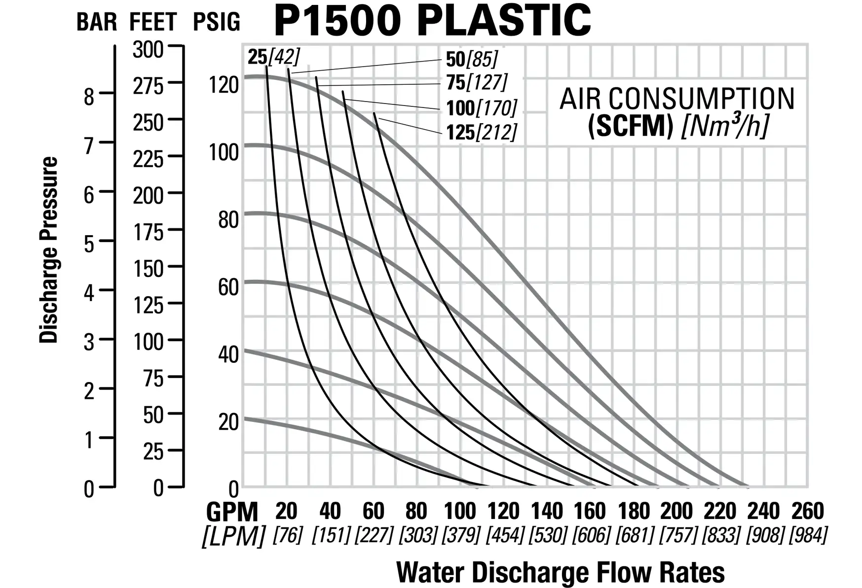 | Presión mínima de entrada de aire: | 10 psig (0.7 bar) - PTFE / 20 psig (1.4 bar) - Santoprene |